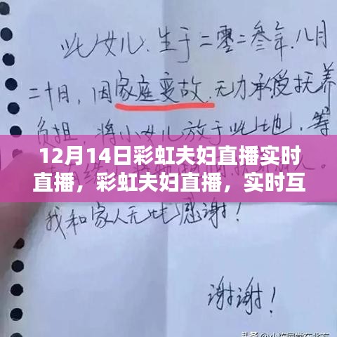 摘要:彩虹夫婦于12月14日進(jìn)行直播,實(shí)時互動體驗深度解析。此次直播內(nèi)容豐富多樣,觀眾參與度高,互動性強(qiáng)。通過實(shí)時直播,彩虹夫婦與觀眾之間建立了緊密的聯(lián)系,展現(xiàn)了真實(shí)的互動體驗。直播也提供了深度解析的機(jī)會,讓觀眾更加深入地了解彩虹夫婦的生活和互動方式。此次直播取得了良好的反響和效果。