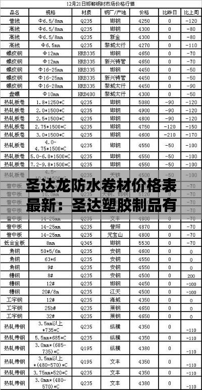 隨著建筑行業(yè)的不斷發(fā)展,防水材料在建筑中的應(yīng)用越來越廣泛。圣達(dá)龍防水卷材作為市場上知名的品牌,其產(chǎn)品質(zhì)量和性能得到了廣大用戶的認(rèn)可。本文將為您詳細(xì)介紹圣達(dá)龍防水卷材的最新價格表,幫助您了解產(chǎn)品的價格信息。