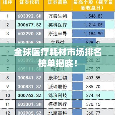隨著全球醫(yī)療技術(shù)的不斷進(jìn)步,醫(yī)療耗材在醫(yī)療領(lǐng)域的重要性日益凸顯,本文將根據(jù)全球醫(yī)療耗材市場的規(guī)模、產(chǎn)品質(zhì)量、技術(shù)創(chuàng)新等多方面因素,對全球醫(yī)療耗材進(jìn)行一次排名。