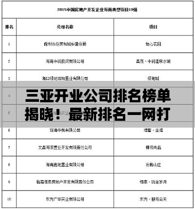 三亞開(kāi)業(yè)公司排名榜單揭曉!最新排名一網(wǎng)打盡
