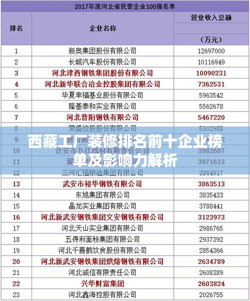 西藏,這片神秘而富有魅力的土地,近年來在經(jīng)濟(jì)建設(shè)的浪潮中逐漸嶄露頭角,工廠裝修作為推動地區(qū)工業(yè)發(fā)展的重要一環(huán),也受到了越來越多的關(guān)注,本文將為您揭曉西藏工廠裝修前十名排名,并探討它們的影響力。