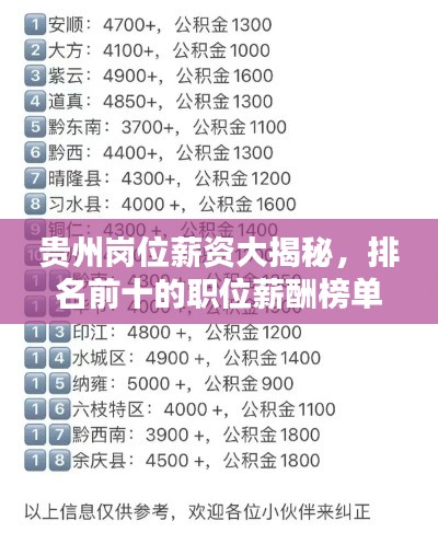 貴州崗位薪資大揭秘,排名前十的職位薪酬榜單!